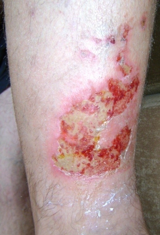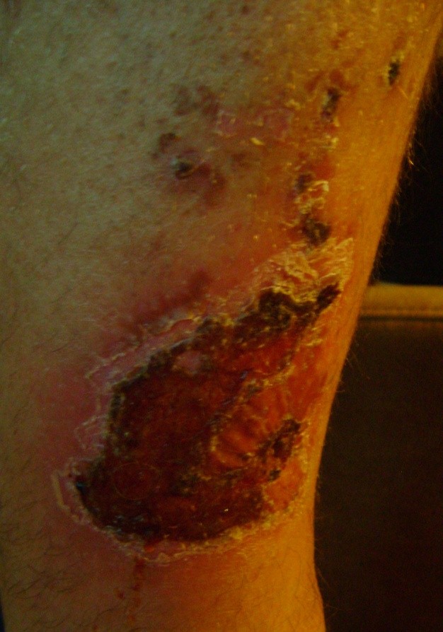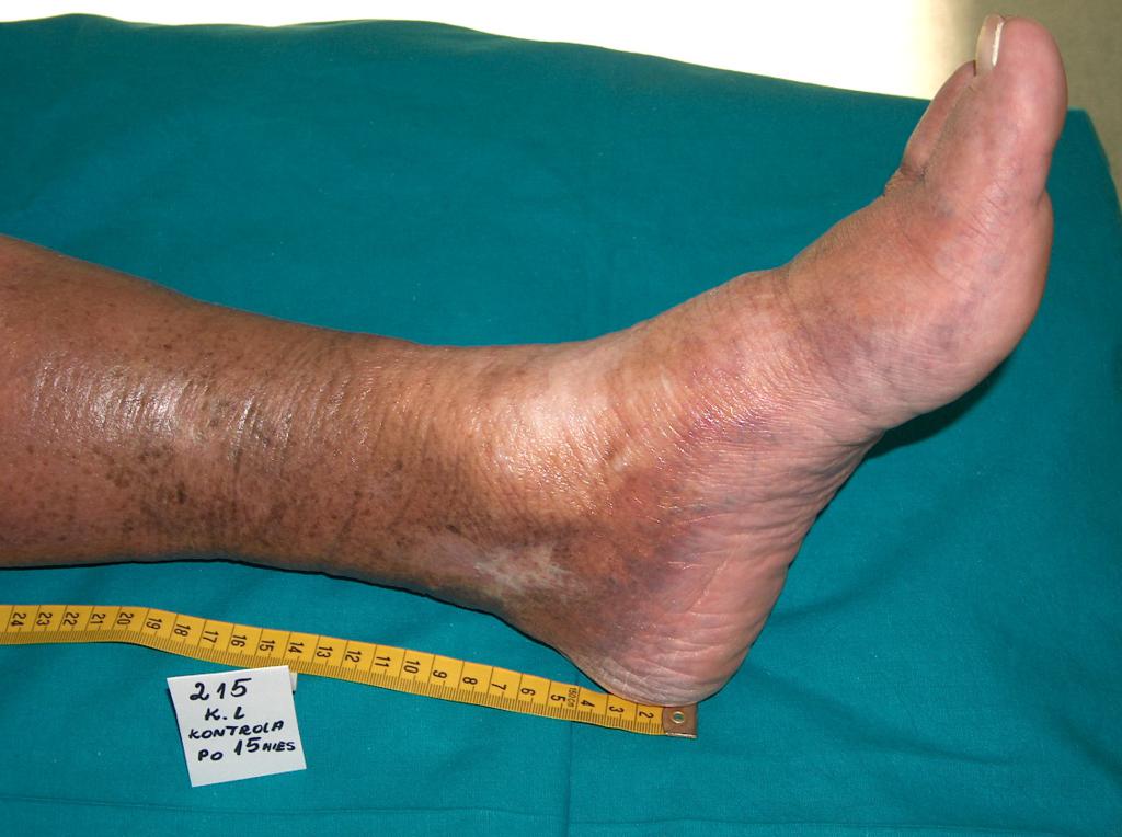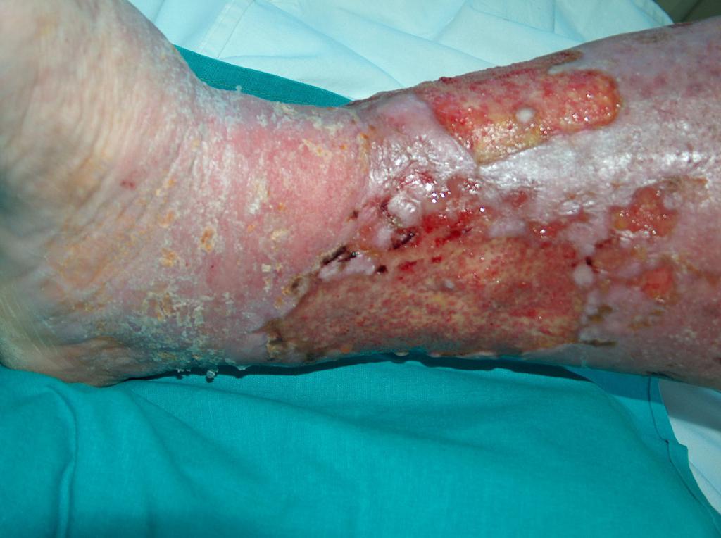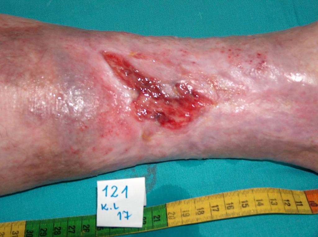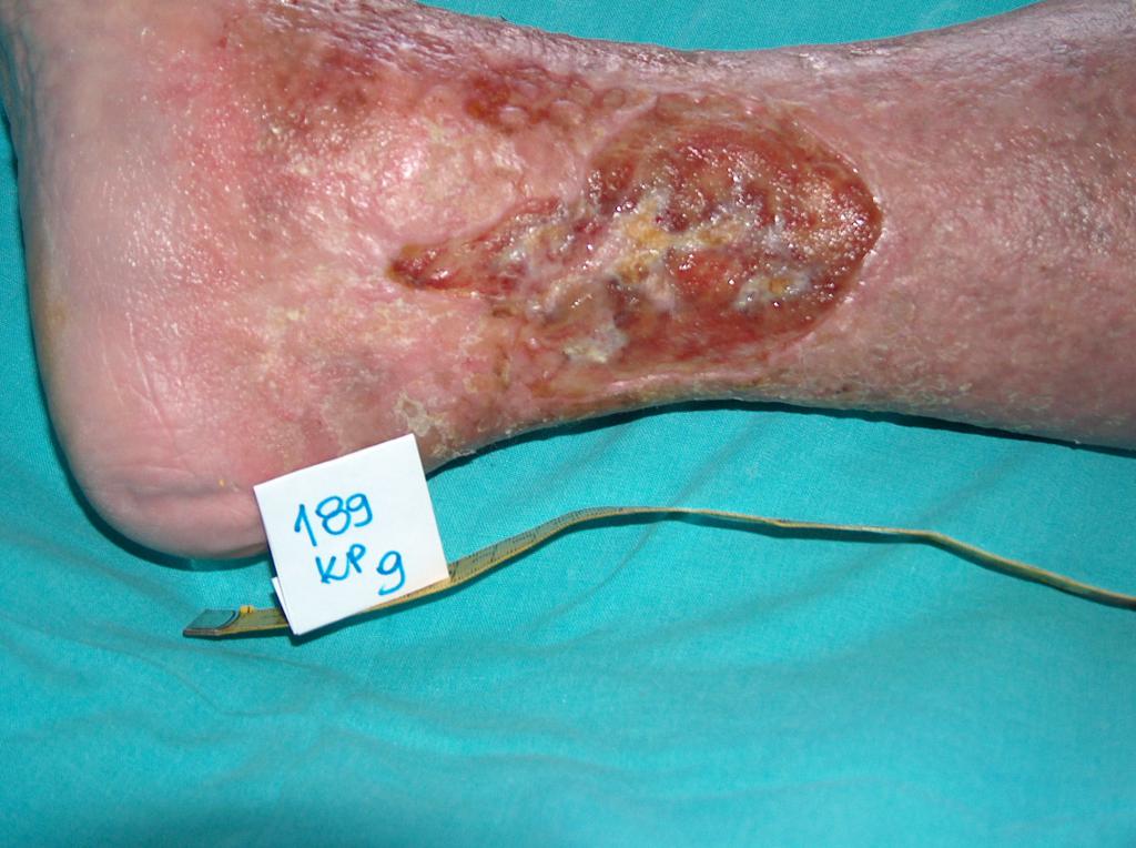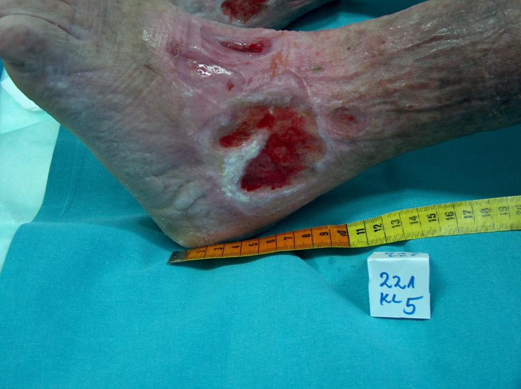 - vredy (vredy predkolenia, preležaniny, diabetická noha) – napr. v dôsledku poruchy obehovej sústavy