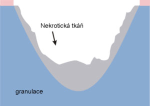 - nekrotické tkanivo spomaľuje proces hojenia – je zdrojom infekcie pre zdravé tkanivo, predstavuje bariéru pre novo vzniknuté tkanivo