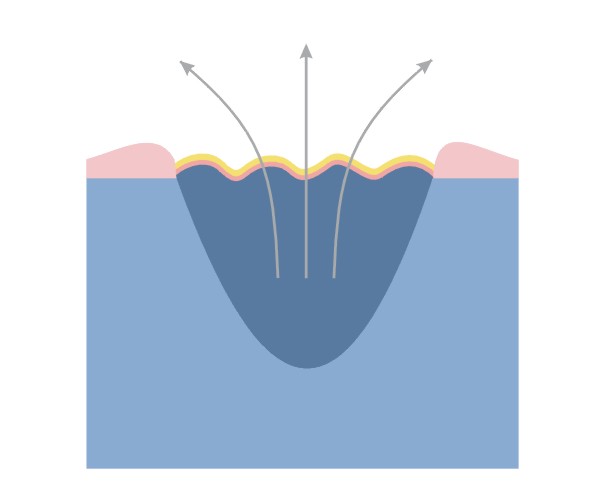 Zúženie rany spôsobuje, že jazva je menšia ako pôvodná rana.