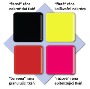 Pre uľahčenie správneho výberu krytia môžeme použiť farebnú klasifikáciu rán založenú na procesoch, ku ktorým dochádza v jednotlivých fázach hojenia rán.