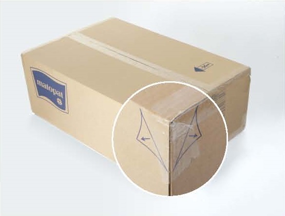 Špeciálny piktogram v rohu prepravnej krabice označuje, kde je kartón lepený, čo je tiež najlepšie miesto na odtrhnutie strany.